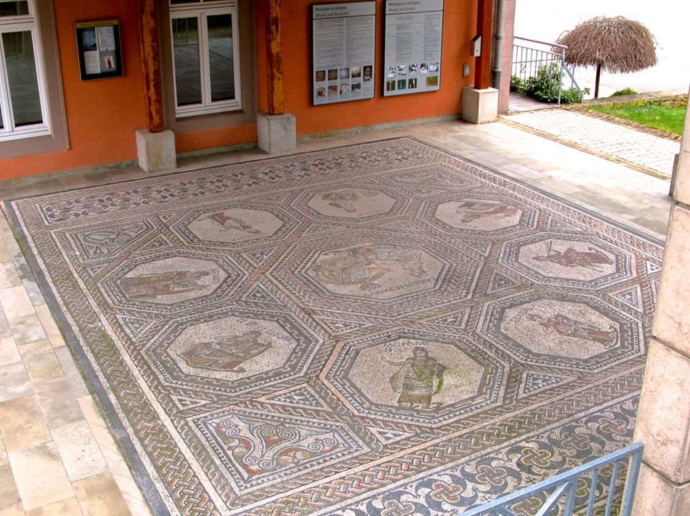 Das etwa 60 qm große Original wurde im Museum von Trier Stück für Stück zusammengesetzt und ist seither in seiner ganzen Pracht im Musée National d’Histoire et d’Art in Luxemburg-Stadt zu bewundern. Eine detailgenaue Kopie des Werks befindet sich jedoch in Vichten zwischen Kirche und Gemeindehaus. Falls Sie mehr über die Präsenz der Römer in der Region wissen wollen, könne Sie gerne eine geführte Besichtigung in dem kleinen Museum in Vichten buchen, in dem vor allem Fundstücke aus einer archäologischen Stätte in Rippweiler ausgestellt sind.