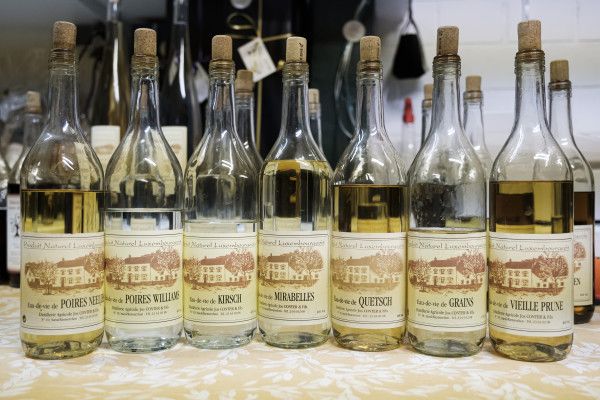Bei der Verkostung mit den InhaberInnen haben Sie die Gelegenheit, verschiedene Sorten “Drëpp” (Schnaps) zu probieren. Das luxemburgische Wort „Drëpp“ stammt vom Wort „Drëps“ für Tropfen ab — ein kleiner Hinweis, dass man dieses Getränk am Besten in Maßen genießt.