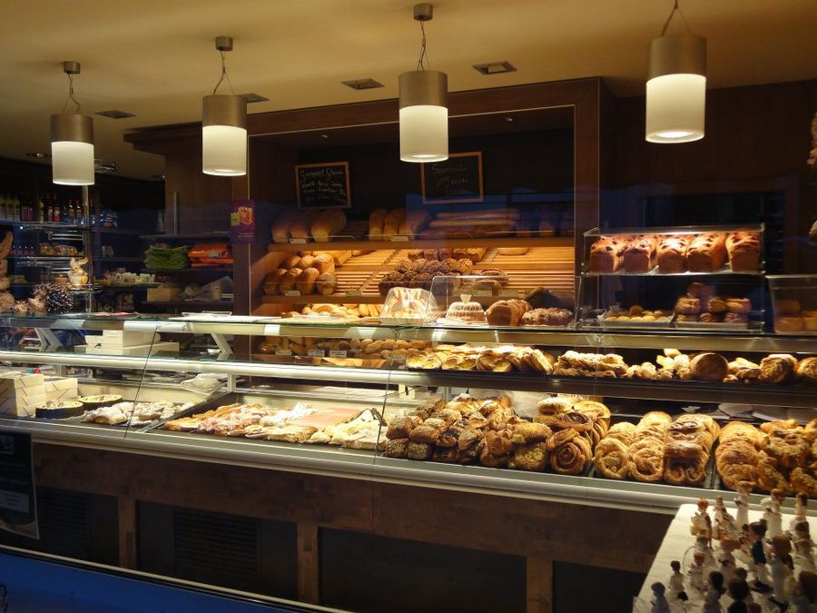 Alles was man bei einer Bäckerei finden kann: Brote, Kuchen, Torten und ebenfalls Eis sowie kleines Gebäck.