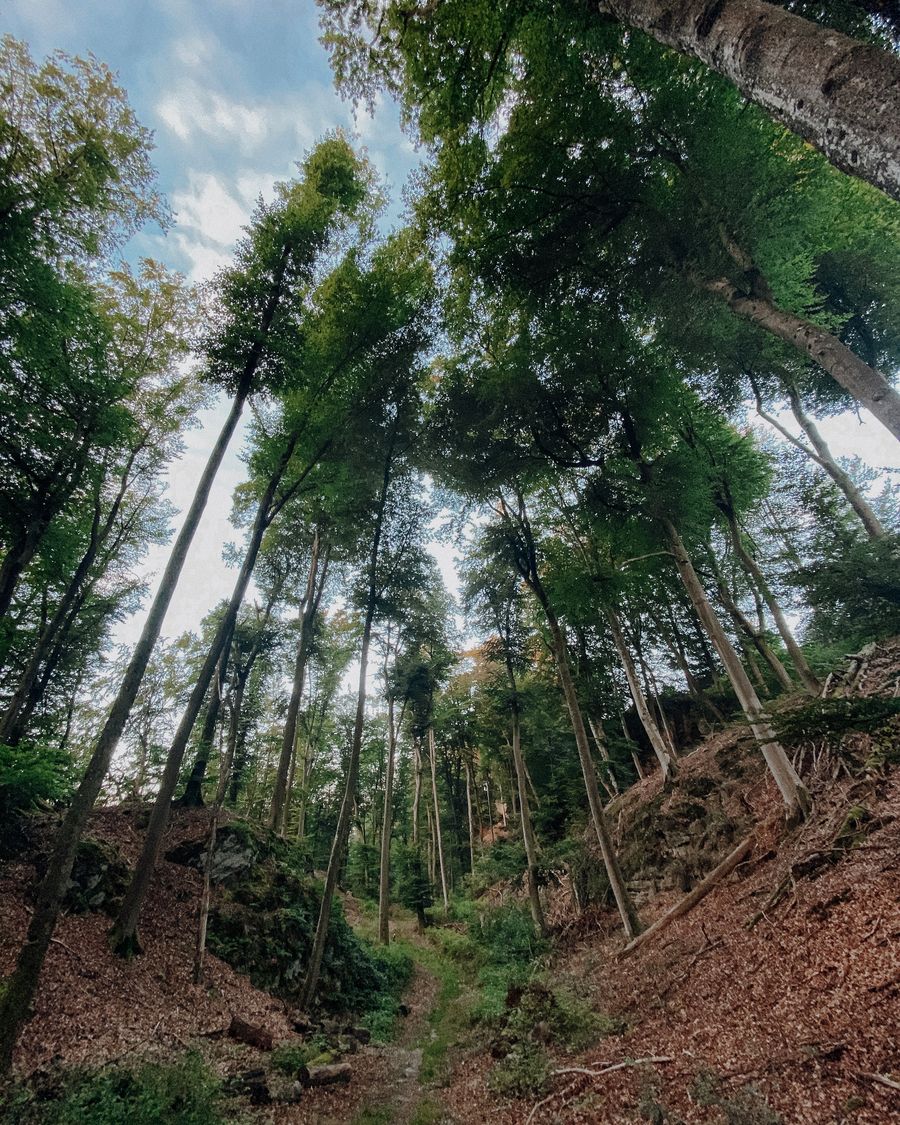 Trittsicherheit erforderlich, teilweise stark verwurzelte Pfade.