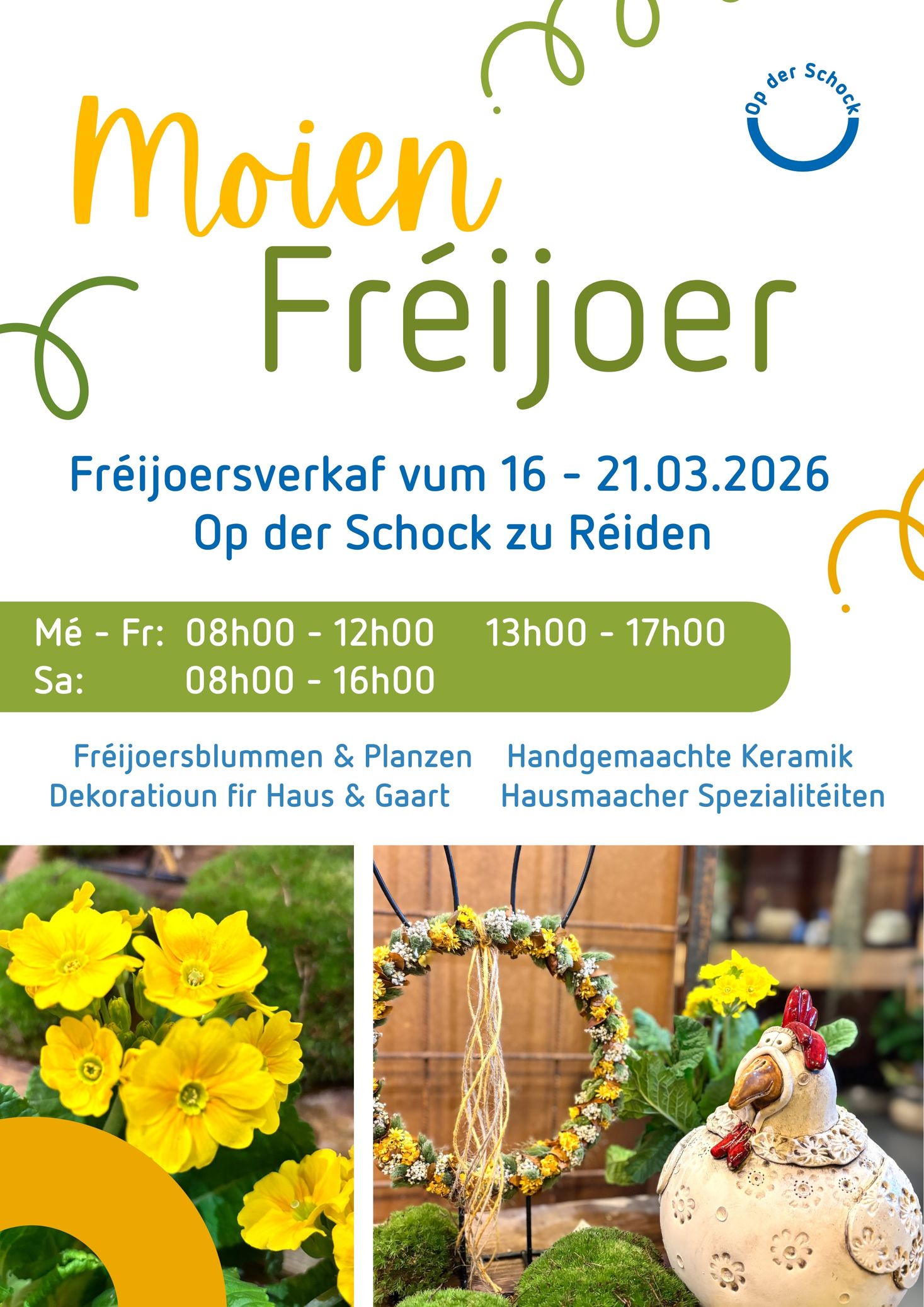 Wir freuen uns darauf, Sie beim Fréijoersverkaaf 2026 begrüßen zu dürfen!
