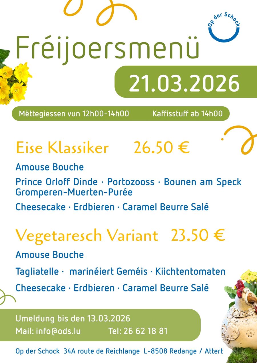 Bitte melden Sie sich für das Mittagessen bis zum 13. März 2026 an:í ½í³§ info@ods.luí ½í³ž 26 62 18 81