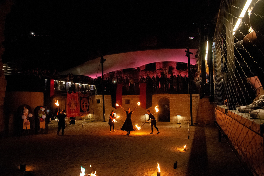 Hier ist das Mittelalter nicht Vergangenheit, sondern Gegenwart. ⚔️ Ritter und Kämpfer stellen sich im Feld, Schmiede lassen Funken fliegen Flammen erhellen den Himmel und auf unserem Tierhof erleben sie die Tiere hautnah.