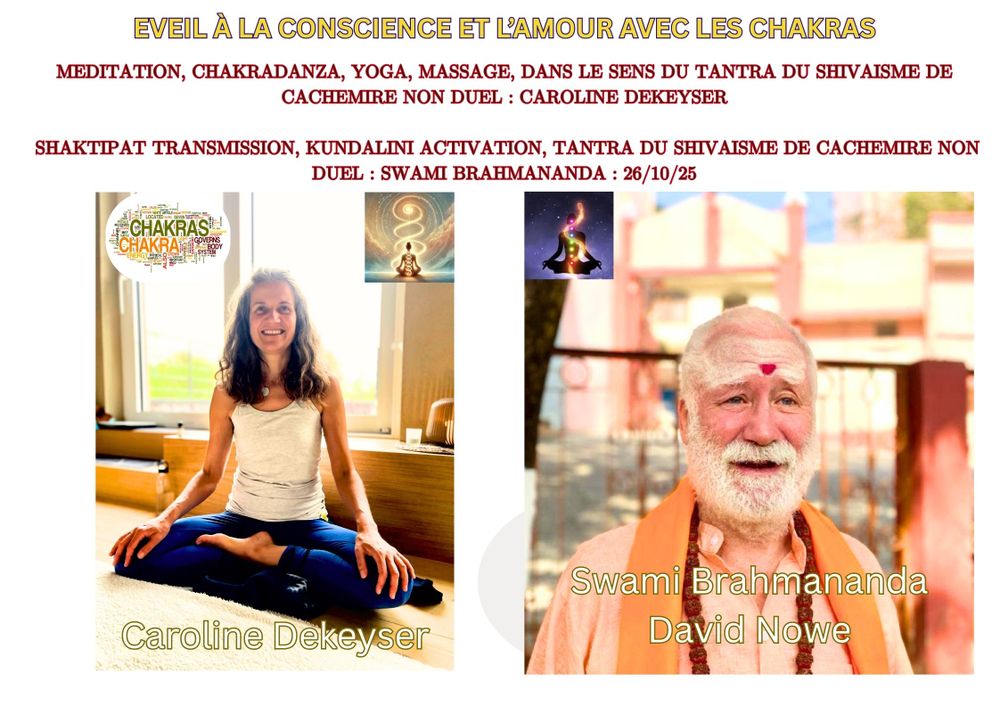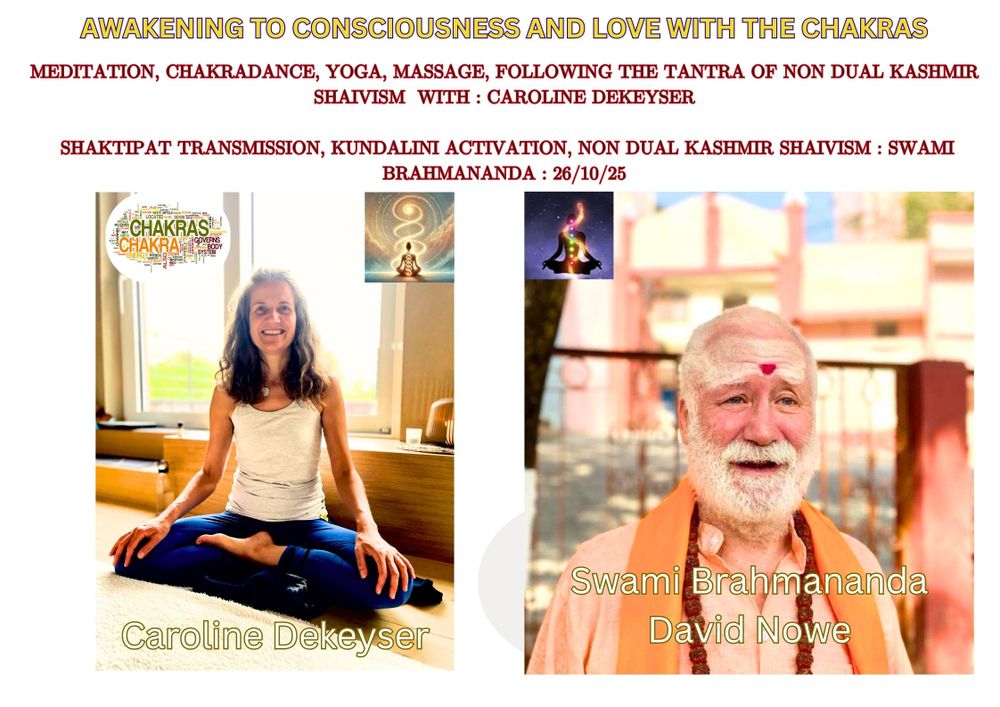 The program Awakening to Consciousness and Love with the Chakras uses tools like meditation, intention, breathwork, ChakraDance, massage to unblock the Chakras, and circulate the Kundalini, and thus discover who you are. Swami Brahmananda who will give the intensive Shaktipat on October 26 will also be a great help in this process.