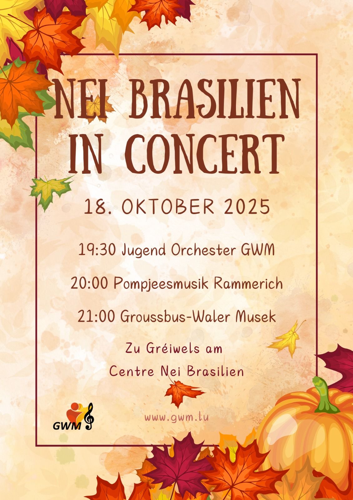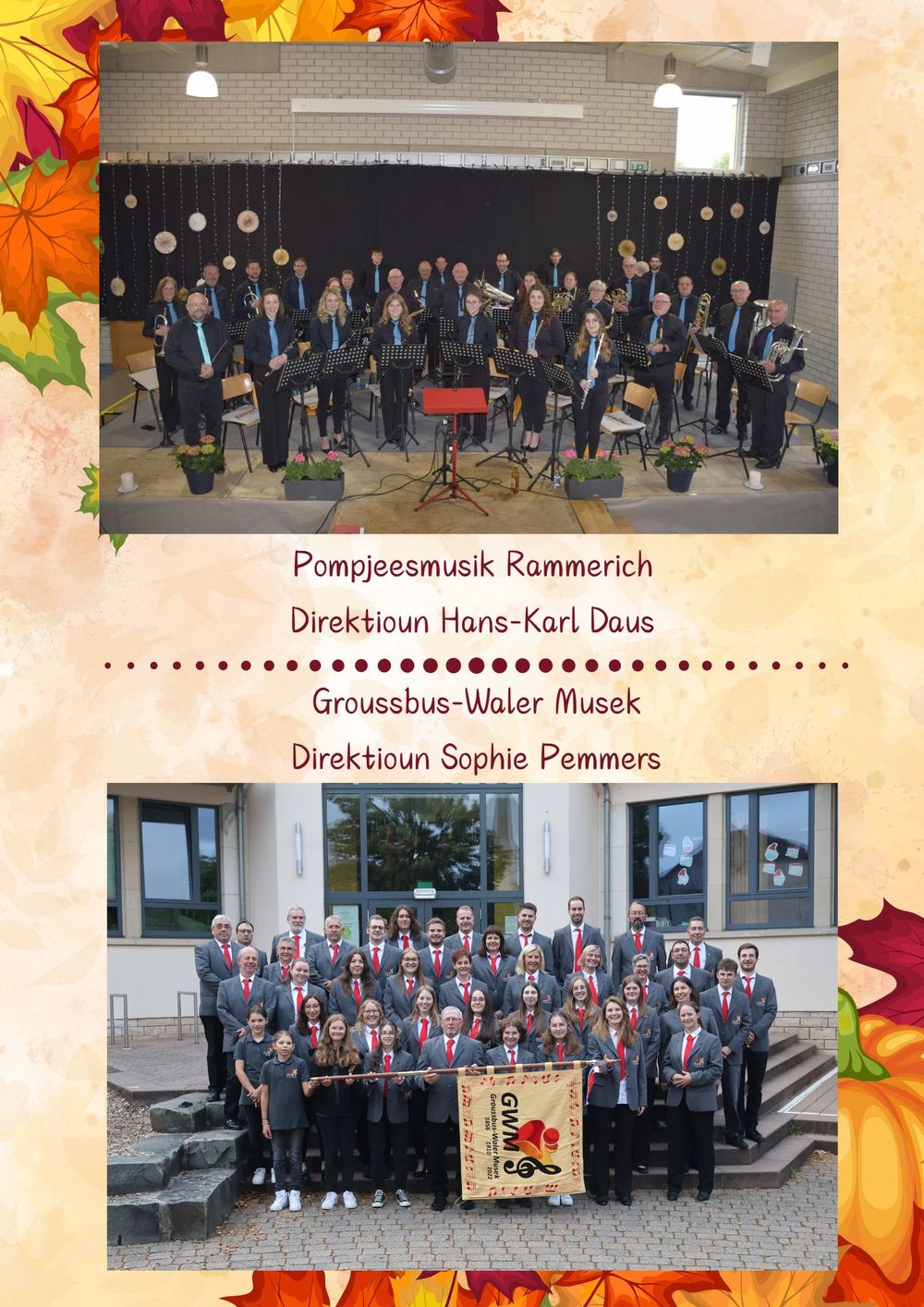 Concert evening, with concerts of the youth group of Groussbus-Waler Musek, the Pomjeesmusik Rammerich and Groussbus-Waler Musek.