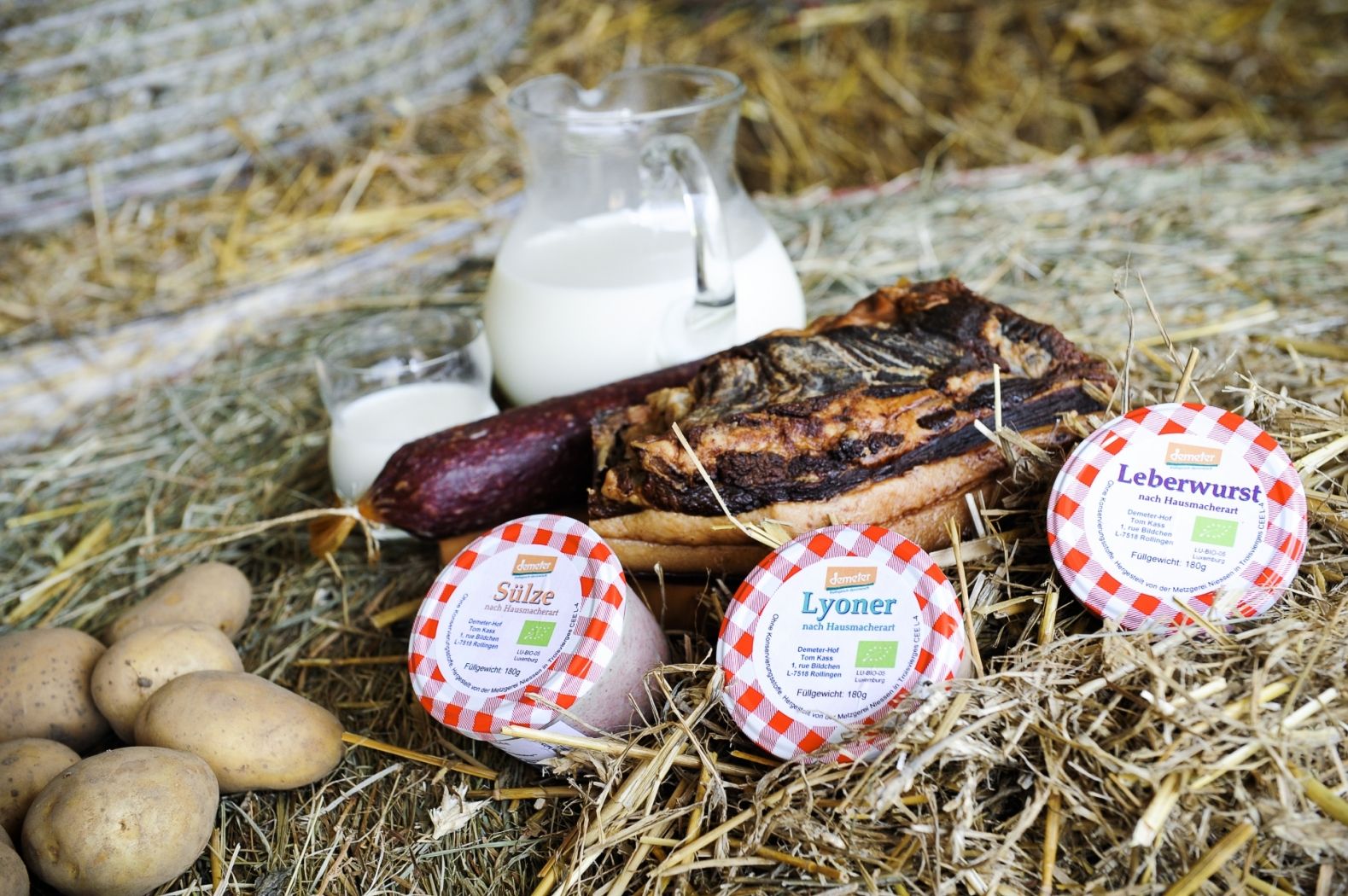 - La viande de veau et la charcuterie sont transformées respectivement produites par la boucherie Niessen de Troisvierges selon les directives Demeter.