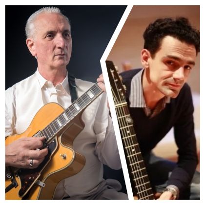 Laissez-vous séduire par l’élégance du jazz avec le duo franco-lorrain Claudio Favari & Christophe Astolfi, une formation raffinée qui mêle improvisation, émotion et virtuosité. Spécialistes du jazz manouche et des chansons des années 60, ils conjuguent avec brio le swing, la chanson française et les atmosphères nostalgiques. Claudio Favari, guitariste et chanteur exceptionnel, allie jazz, soul et musiques sud-américaines avec une technique fluide et expressive, tandis que Christophe Astolfi, autodidacte et spécialiste de la valse, apporte toute sa passion et son savoir-faire à la guitare, notamment dans le style manouche.