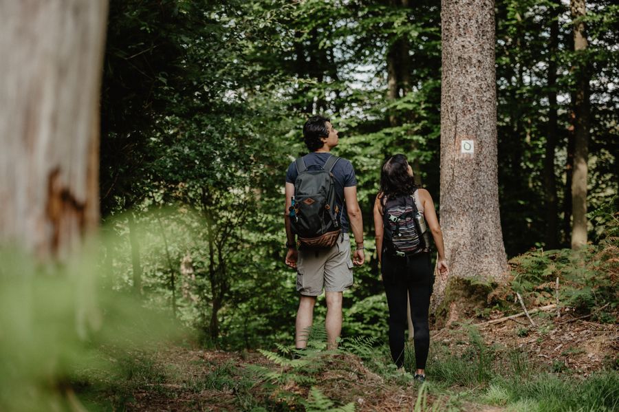 Le sentier de randonnée est balisé dans les deux sens de marche. Veuillez suivre les marques blanches et vertes.