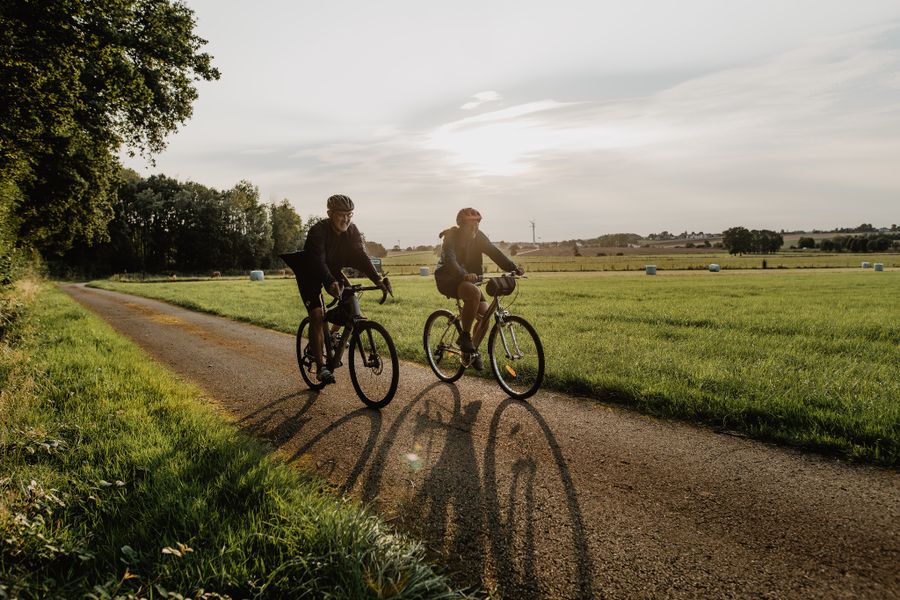 Nous te suggérons d'utiliser un vélo de randonnée ou une Gravel bien entretenu avec des pneus d'environ 30 mm de large, conforme au code de la route. Emporte une chambre à air de rechange, des démonte-pneus et une pompe pour gérer les crevaisons. Les indispensables de sécurité incluent un casque et des lumières. Prends une gourde pour rester hydraté et envisage un kit d'outils de base pour des réglages inattendus.