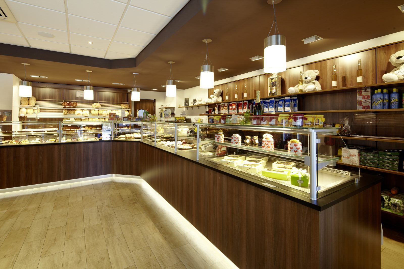Everything you can find in a bakery and patisserie: Bread, cakes, pies and even ice cream and pastries.