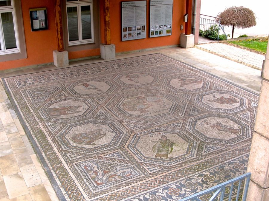 The municipality of Vichten gained a certain notoriety through the discovery of a Roman mosaic in 1995 depicting Homer within a circle of the nine muses. The mosaic, which was created around 240 A.D., shows the muses in the order determined by Hesiod around 700 BC. The mosaic was created in a workshop in Trier and covered the floor of the reception hall of a Gallo-Roman villa. A copy of the mosaic can be found between the church and the community centre.