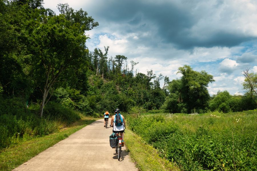 Our path continues past Moestroff and Gilsdorf to Diekirch. The bike path takes us through the southern district of the Sauer. Diekirch has a nice small pedestrian zone with several restaurants, bars, and terraces. Along the riverbank, we continue to Ingeldorf, where we cross the river and ride a stretch along the northern bank before crossing to the other side to Ettelbrück. We follow the signs of PC16, which leads us along the riverbank to the sports center. Here PC16 ends and transitions into PC15, the bike path that takes us along the Alzette riverbank to Luxembourg City. This bike path mostly follows the railway line, so you can also simply change to the train towards Luxembourg City. We take the bridge over the river and are now back on a bike path that leads along the railway tracks from Mersch to Lintgen. The route is well signposted at all times, so we can follow it to Walferdange. In Walferdange, we reach "Rue de l'Eglise," where we turn right, which then becomes Rue Henri Dunant. We come to the sports field of FC Avenir Beggen, where we meet PC1 (turn left at the first intersection after the sports field). We turn right and go straight along the railway tracks until we reach Dommeldange. We pass the train station and follow the signs "Luxembourg-Grund." The route goes through Lavals Park, at the end of which we turn right and left onto the marked "bicycle street." At the end, in the Pfaffenthal district, is the panoramic elevator, which cyclists can also use. This takes you quickly right into the center of Luxembourg City. To reach the district Grund (Gronn), you ride from Pfaffenthal through rue "Sosthène Weis" (also a bicycle street), which takes you under the castle bridge back to the starting point of the tour.